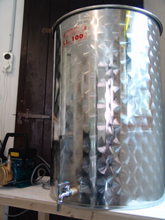 In diesem Chromstahltank gärt unser obergäriges Bier während rund einer Woche. Trotz der traditionellen Herstellungsweise legen wir natürlich grossen Wert auf die Hygiene. Das Bier würde sonst schnell Geschmacksfehler aufweisen. Deshalb kommt es während des Herstellungsprozesses ausschliesslich mit gut gereinigten Materialien in Kontakt. Der Einsatz des Althaus (Braukessel) besteht aus blankem Kupfer und der Maische- wie der Gärtank aus Chromstahl. Das Bier wird wird mit lebensmittelechten Schläuchen gepumpt.
